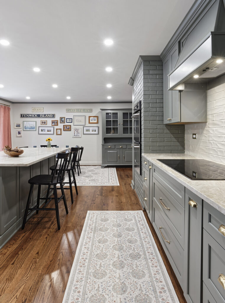 Now, we have our forever kitchen. It’s not only beautiful but perfectly suited to our everyday lives. Some of our favorite details are the new microwave seamlessly built into the island, a dedicated range hood with a powerful fan, a beverage cooler, and cabinetry that makes every inch functional.